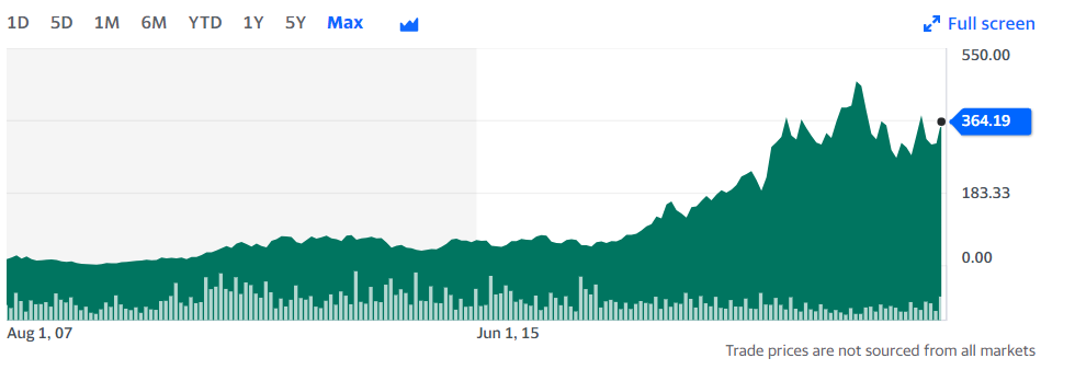 룰루 레몬 주가 현황 입니다. - 출처 : 야후 파이낸스